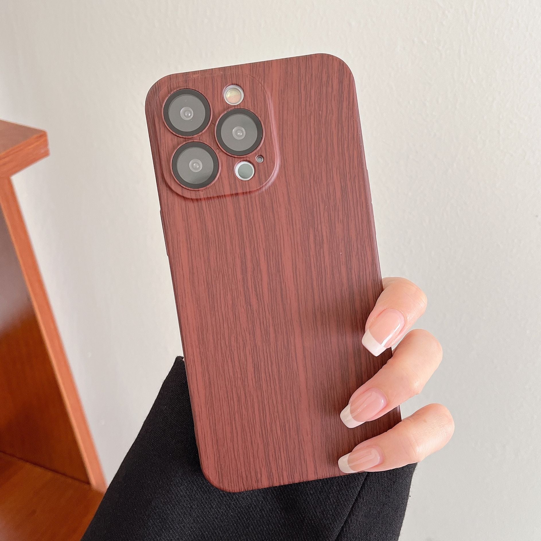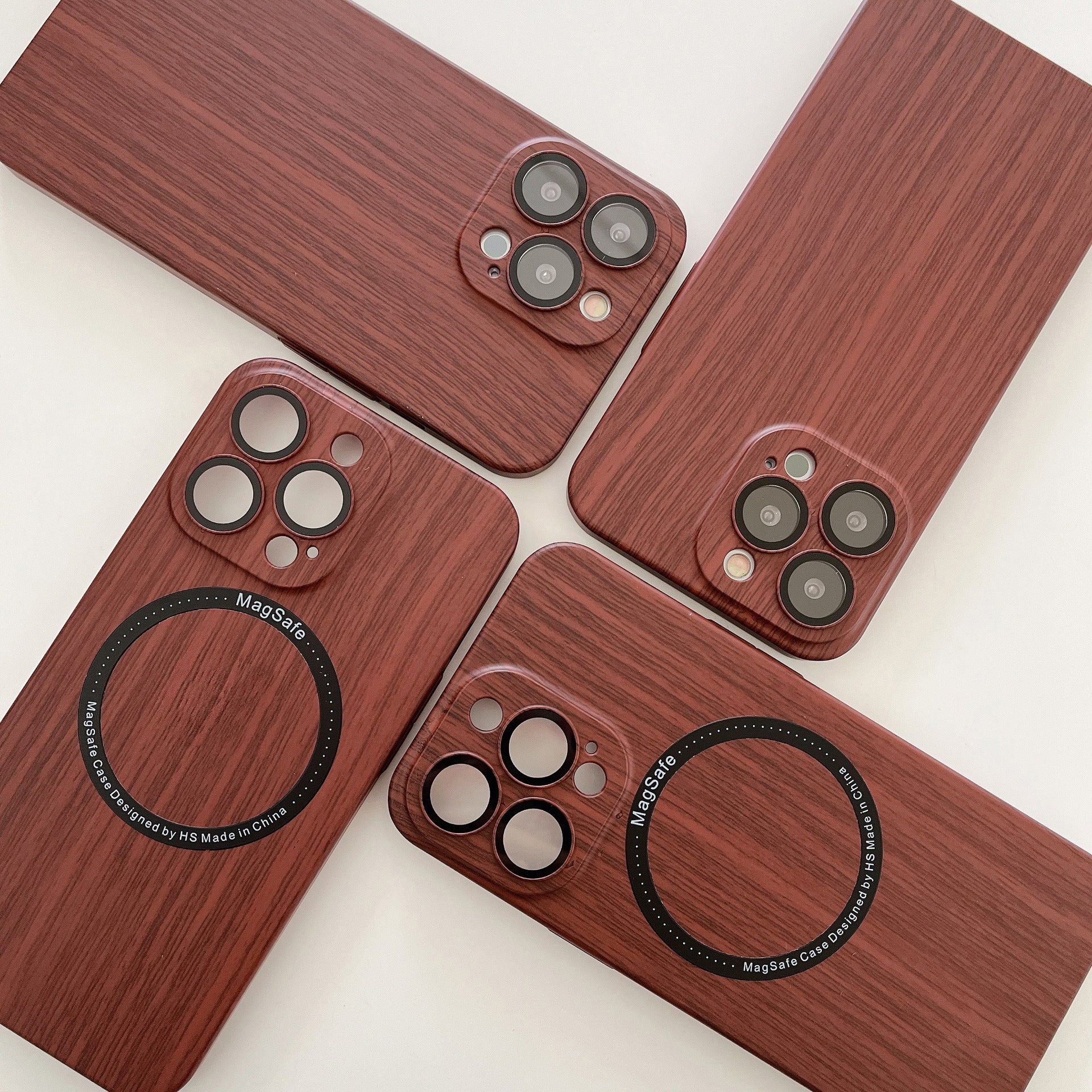 Car magnetic walnut grain Apple 13promax mobile phone case iPhone 14 comes with lens film 13 suitable for 12