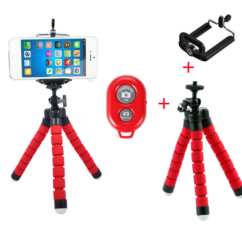 Mobile phone Bluetooth wireless self-timer tripod camera remote control clip sponge eight-claw self-timer desktop stand